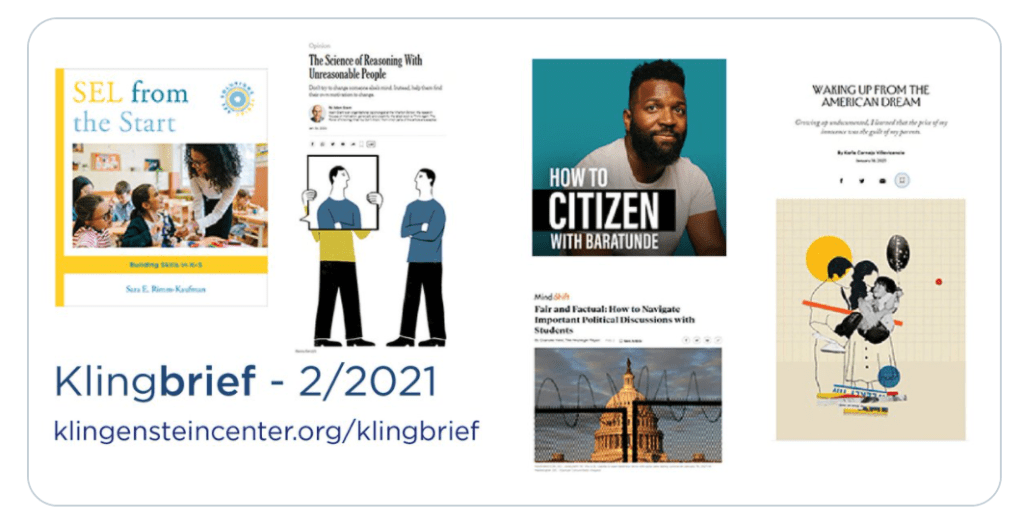 As you (may) know, the content in Klingbrief is not pre-arranged. Instead, it traces the zeitgeist of independent school education. What are educators reading and thinking about? Perhaps more important, what do they care about enough to read, think about, synthesize, write about, and submit to our editorial board? This month, you’ll find our typical random spread along with a tight focus on podcasts trying to help educators and students make meaning of the final days of 2020 and the first few days of 2021 — a dark and strange time in American (recent) history. The February issue is here, the archive is here, and the submission portal is here — all best viewed on a computer of some sort rather than a phone.