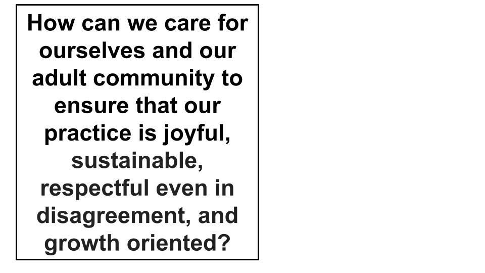 We must always be open to learning more about what we’d like to teach, how best to teach it, how to help our students, etc. We must be willing to learn from our students and to believe that they have knowledge to impart to us — no matter how young and/or inexperienced they may seem.
